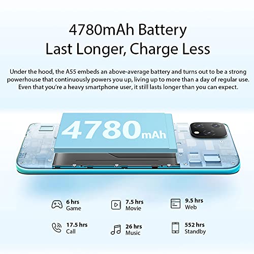 【Grande batteria da 4780 mAh】 La grande capacità della batteria da 4780 mAh elimina la preoccupazione di rimanere senza batteria durante il giorno. Inoltre, la gestione della batteria dello smartphone e dell’IA intelligente blocca le app inattive e riduce l’eccessiva memorizzazione nella cache per risparmiare energia. senza doversi preoccupare di esaurire la batteria (musica della cuffia: 21 ore, tempo di conversazione 4G: 16 ore, tempo di video online: 6,3 ore, tempo di standby: 316 ore)