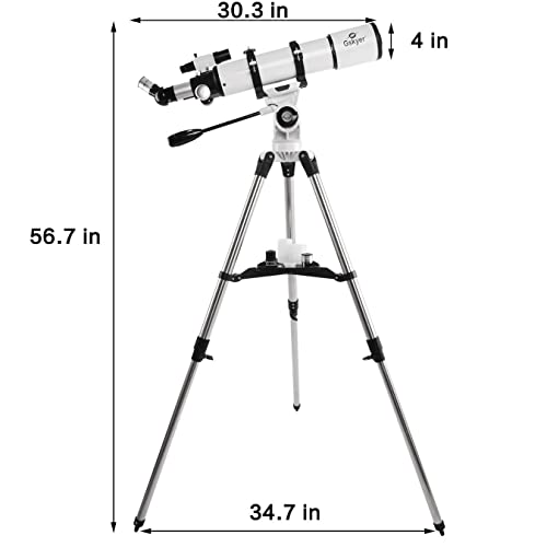 【Treppiede regolabile】 Questo telescopio consente diverse posizioni di visualizzazione con un treppiede in alluminio regolabile. L’altezza del treppiede in alluminio può essere regolata da circa 31,5 pollici a 49 pollici.
