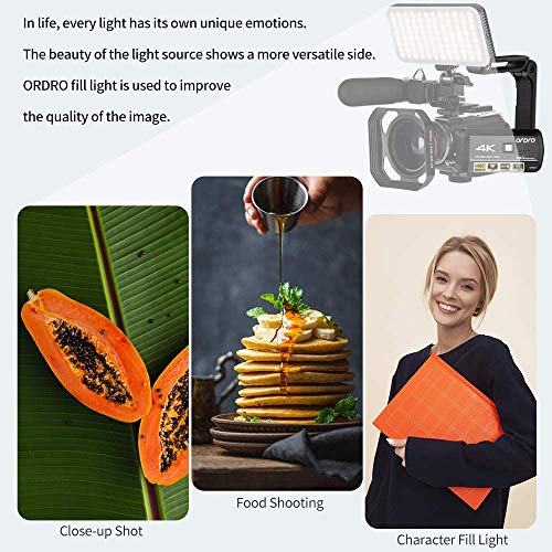 【Microfono esterno e luce video a LED】 Il microfono viene utilizzato per ridurre efficacemente il rumore durante la registrazione e migliorare la qualità del video. La luce a LED è dotata di 96 luci a LED singole / tre modalità di illuminazione che possono essere installate nel dispositivo di ripresa, supportando la regolazione della luminosità e della temperatura di colore della luce video a LED SL-80.