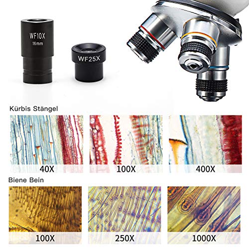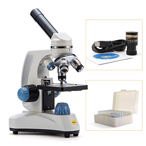 SWIFT Microscopio monoculare SW150-EP1-5PBC, con fotocamera oculare da 1,3 MP, 40X-1000X per bambini, set microscopio per bambini, trasmissione grossa e fine coassiale, con doppia illuminazione a LED